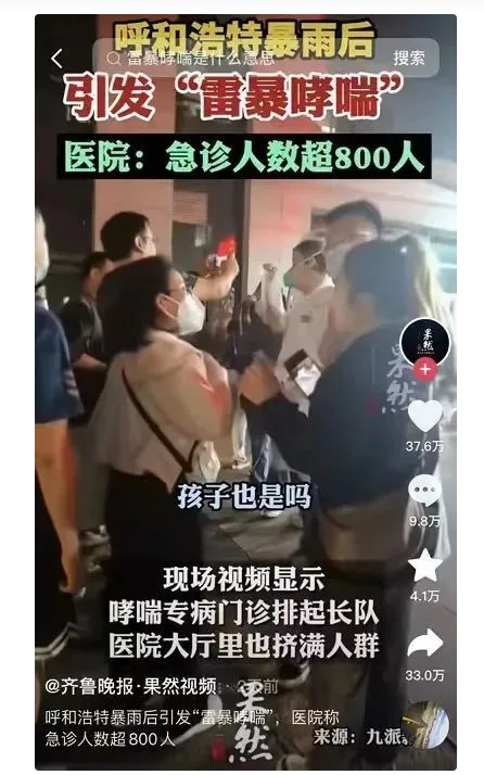 隨后,呼和浩特市衛(wèi)健委工作人員表示,近期當(dāng)?shù)囟嗉裔t(yī)院的雷暴哮喘病人確實增多了。